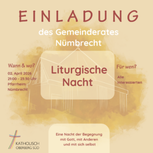 Der Gemeinderat Nümbrecht lädt ein zur Liturgischen Nacht am 2.4.2026 um 21:00 Uhr im Pfarrheim.