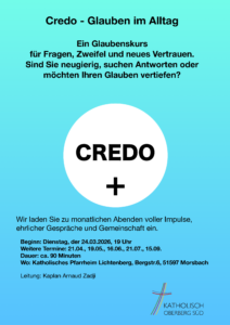 Herzliche Einladung zum Glaubenskurs mit Kaplan A. Zadji im Pfarrheim Lichtenberg.