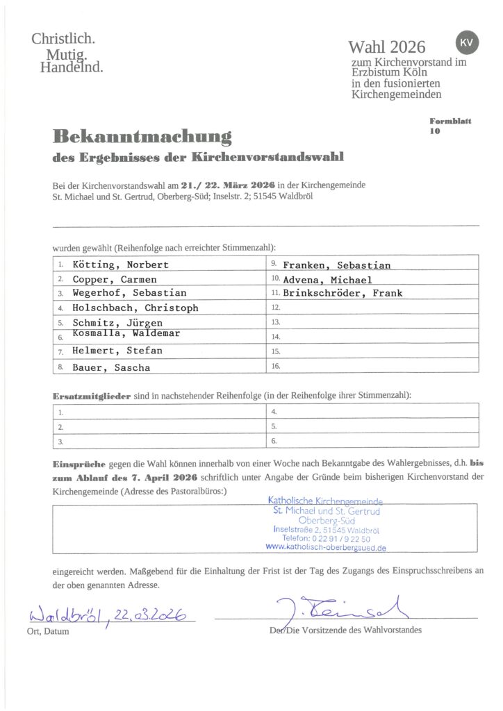 Im Anhang finden Sie das Ergebnis unsere KV-Wahl vom letzten Wochenende.