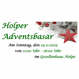 Herzliche Einladung zum Holper Adventsbasar am 23.11.2025 von 11:00 – 16:00 Uhr im Gesellenhaus Holpe.